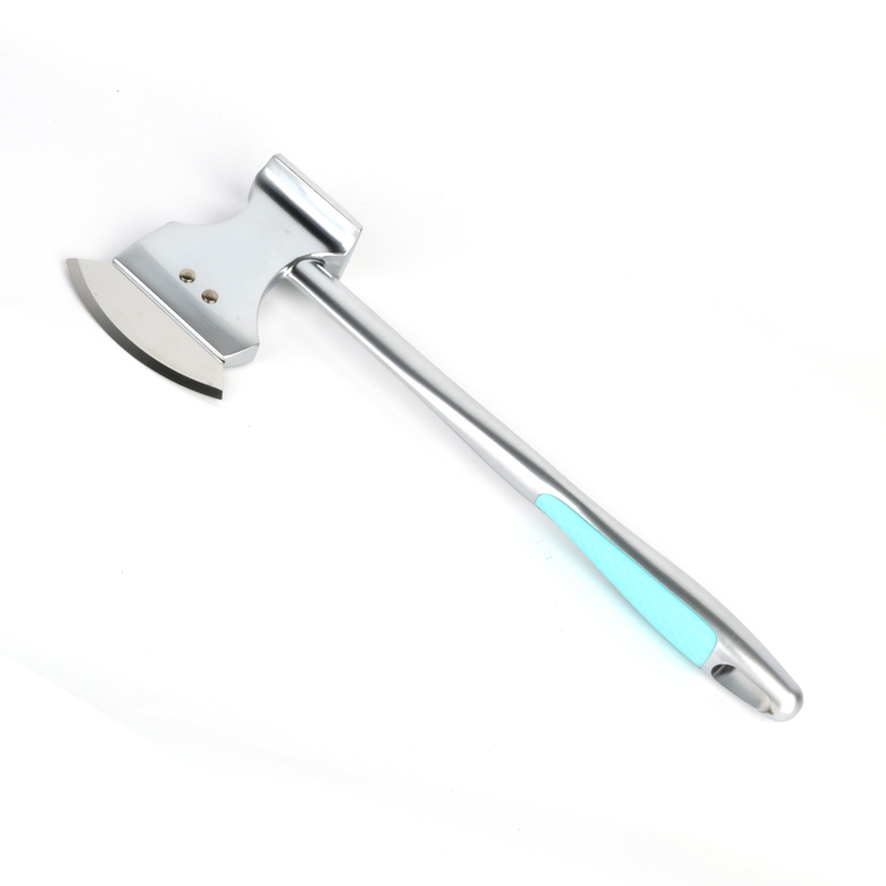 पिझ्झा कटरचे ब्लेड उच्च-गुणवत्तेच्या 304 स्टेनलेस स्टीलचे बनलेले आहे, आणि त्याची रचना कुऱ्हाडीच्या आकाराने प्रेरित आहे, ते अधिक व्यावहारिक आणि दिसायला आकर्षक आहे. हे साधन मध्यम वजनाचे आहे, जे वापरण्यास सोपे आणि त्याच्या कार्यात अष्टपैलू बनवते. पिझ्झा कटर म्हणून वापरला जातो किंवा पिझ्झा काढण्यासाठी देखील वापरला जाऊ शकतो. मांसाची हाडे आणि फॅशिया किंवा इतर चाकू उपलब्ध नसताना भाज्या आणि फळे तोडण्यासाठी फळ चाकू म्हणून.