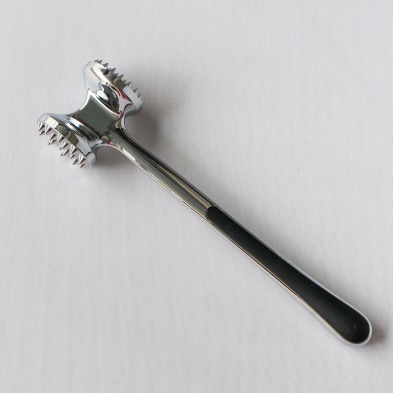 हे जिंहुआ हंजिया कमोडिटी कं, लिमिटेड द्वारे उत्पादित केलेले जस्त मिश्र धातुचे मांस टेंडरायझर आहे, एकात्मिक डाय-कास्टिंग प्रक्रियेचा वापर करून उत्पादित केले जाते. धातूचा पृष्ठभाग काळजीपूर्वक हाताने पॉलिश केला जातो आणि संपूर्ण उत्पादन पर्यावरणास अनुकूल सुरक्षित इलेक्ट्रोप्लेटिंग प्रक्रियेतून जाते. नंतर कोटिंग निष्क्रिय केले जाते जेणेकरून ते स्टीलसारखे कठोर बनते. आरामदायी लांबी 2 सेंटीमीटर आकाराचे असते. प्रौढ व्यक्तीच्या हातात. मांस टेंडरायझरच्या पुढील आणि मागील दरम्यानचे वजन वितरण सोनेरी गुणोत्तरानुसार डिझाइन केलेले आहे, जे वापरकर्त्यांना कमीतकमी प्रयत्नात मांस मारण्याची परवानगी देते, पूर्णपणे हॅमर हेडच्या गुरुत्वाकर्षणावर अवलंबून असते. मांस टेंडरायझरच्या डोक्यावर विविध प्रकारच्या मांसासाठी दोन भिन्न पृष्ठभाग असतात. प्लॅस्टिक बफर दोन्ही बाजूंच्या वजनाच्या संपूर्ण वजनासाठी पुरेसा वजन प्रदान करतात. टेंडरायझर 275 ग्रॅम आहे आणि त्याची रचना पारंपारिक मॉडेल्सच्या तुलनेत 13% पेक्षा जास्त किंमत कमी करून उत्कृष्ट कार्यक्षमता सुनिश्चित करते. ते स्वच्छ करणे देखील खूप सोपे आहे, तुम्ही ते पाण्याने स्वच्छ धुवू शकता किंवा डिशवॉशर वापरू शकता.
